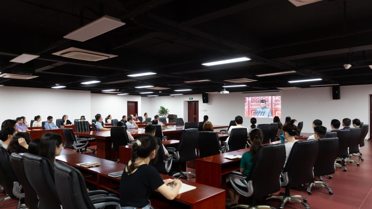 【安徽輕工網訊】7月1日上午8時,慶祝中國共產黨成立100周年大會在北京天安門廣場隆重舉行。公司黨委班子成員及部分黨員、入黨積極分子70余人聚集一堂,集體收看了大會實況直播,深切感受大會熱烈氛圍。