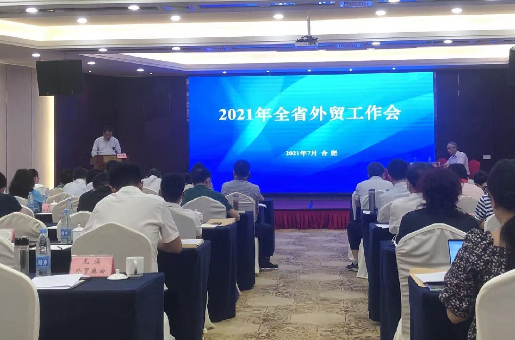 【安徽輕工網訊】(安徽商務公眾號消息)7月29日和30日,安徽省商務廳召開2021年全省外貿工作會。安徽省商務廳副廳長朱丹、合肥海關一級巡視員雷海濤、省財政廳二級巡視員汪代啟、省稅務局二級巡視員曹乾榮等出席會議,來自全省各地市商務負責同志、廳各處室領導、以及各出口企業的代表參加了本次會議。公司柳夕良董事長參加了此次會議。