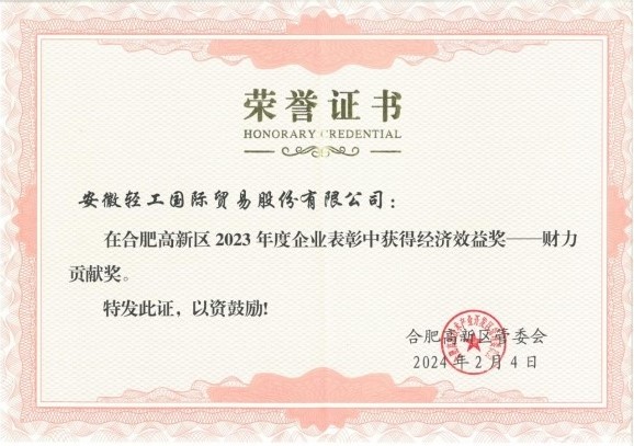 日前,合肥高新區管委會以“致敬創新,共筑未來”為主題,隆重舉辦2023年度企業表彰大會。本次大會旨在表彰過去一年中,為高新區經濟社會發展作出突出貢獻的優秀企業和個人。大會共頒發了“經濟效益、招商引資、示范引領、科創金融、資質榮譽、綜合效益”等6大類24項大獎,我司憑借亮眼的經營發展實績,成功榮獲2023年度經濟效益獎-財力貢獻獎。