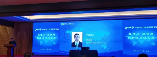 日前,2024年中國輕工外貿發展年會在北京隆重召開。中國輕工工藝品進出口商會會長王忠奇、副會長李文鋒、張杰、陳江峰等出席會議。多個地方商務主管部門、地方輕工行業商協會的領導和輕工外貿企業的代表近400人參加會議。我司黨委書記、總裁朱東風應邀代表公司參加會議。