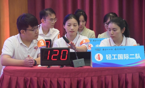 經過三個多小時的激烈角逐,朱玲、張浩宇、徐懷春、張鑫蓉組合的輕工夢之隊以95.8最高分脫穎而出榮獲冠軍,鄧曉雨、凌雪蓉、倪浩辰,孫曉組合的輕工卓越隊以85.54緊追其后榮獲亞軍。我司梁子秋具備了出色的控場能力,他能夠迅速把握節奏,調動現場氣氛,使整場競賽更加精彩,確保了每個環節順利進行。